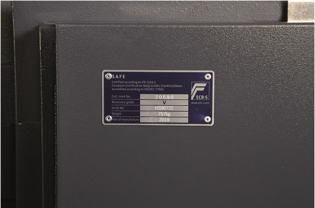 ― взломостойкость одного из наивысших классов Eurograde V по евростандарту EN 1143-1, что соответствует пятому классу по ГОСТ Р и означает пригодность для установки в зонах максимального риска: в зданиях банков, крупных торговых центрах, ломбардах, музеях, в ювелирных помещениях.