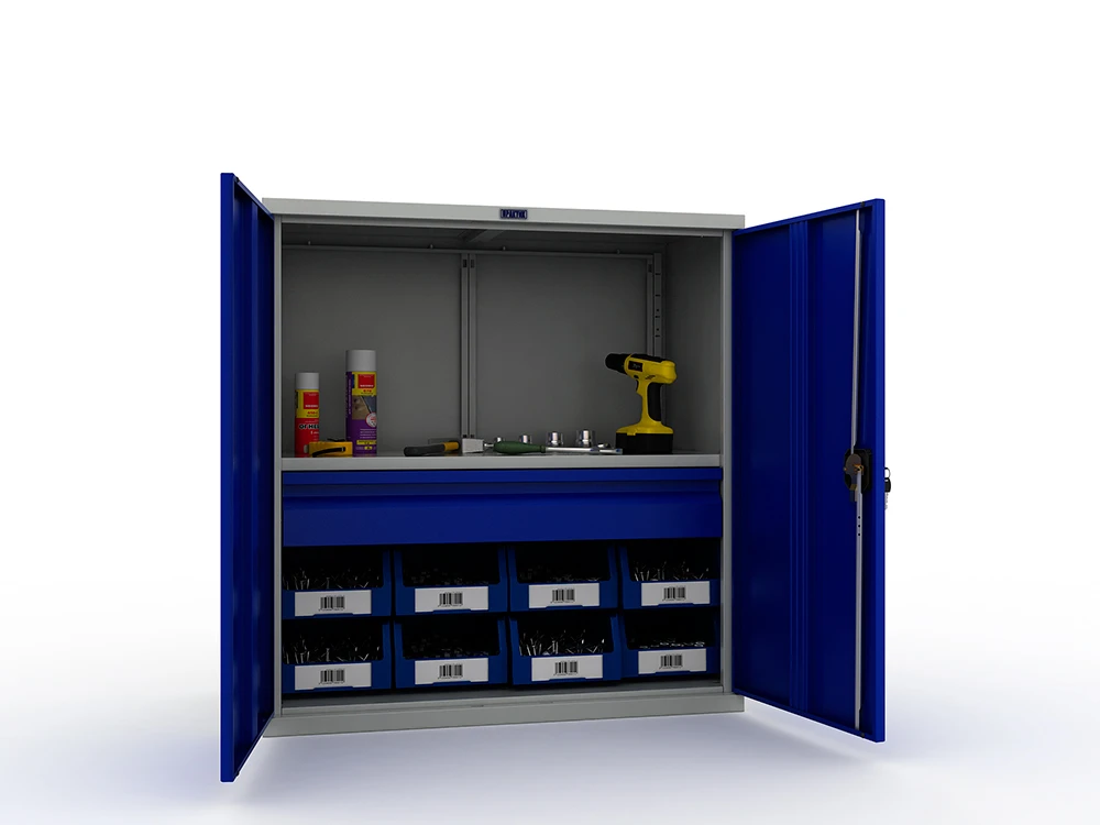Предназначен для хранения различных инструментов и приспособлений, а так-же запасных частей и расходных материалов в мастерских, цехах и производственных помещениях.Шкафы для инструментов TC-1095 можно индивидуально скомпоновать под свои нужды выбрав необходимые вам комплектующие: перегородки, ящики (до 6 больших выдвижных ящиков TCF 87x45 или до 12 малых выдвижных ящиков TCF 42x45) так-же можно выбрать различные полки или перфорированный экран.